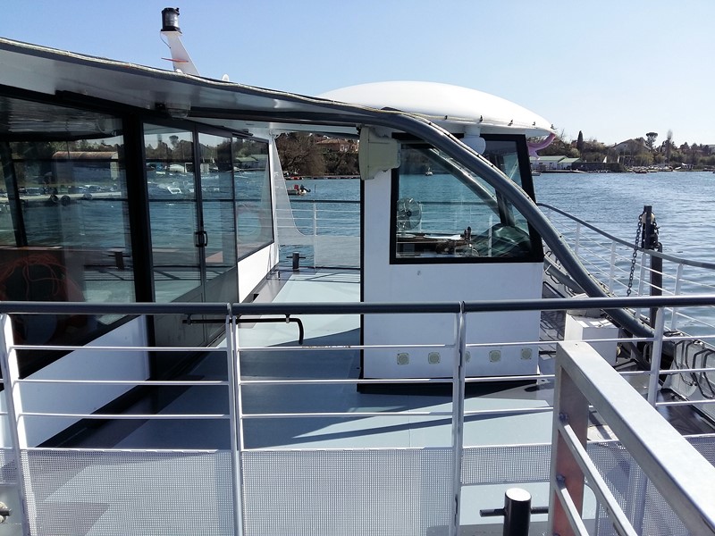 Propulsion 100% électrique , 2 X 35 KW , 12 KM / h maxi , autonomie 6 h dim 18 X 7 m