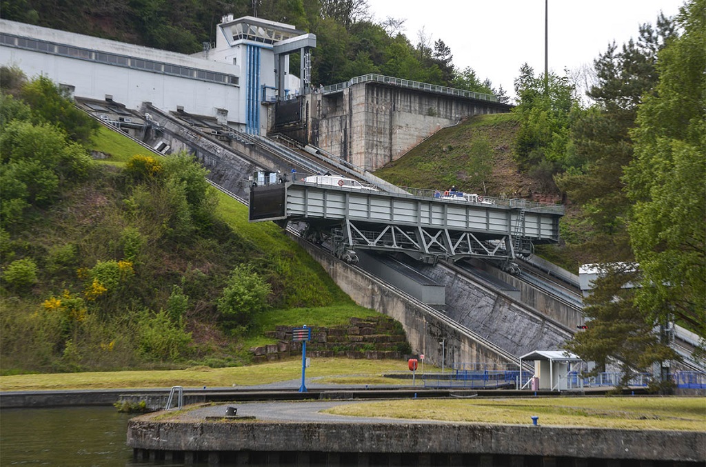 Le PLAN INCLINE de SAINT-LOUIS ARZVILLERSitué en Moselle, sur le Canal de la Marne au Rhin, le plan incliné de Saint-Louis Arzviller est un ouvrage industriel unique en Europe. Conçu par l’ingénieur général des Ponts et Chaussées Robert VADOT, il est mis en service en 1969. Rattrapant un dénivelé de 44m55, cet ascenseur à bateaux permet d'éviter 17 écluses et de réduire une journée de navigation à près de quatre minutes. Près de quatre ans de travaux ont suffi pour terminer le chantier et depuis, le plan incliné n'a pas changé. Les bateaux de plaisance ont remplacé les péniches industrielles et le site reçoit près de 100 000 visiteurs par an.