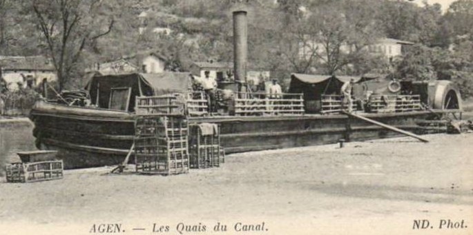 Bonjour à tous , je suis presque sur que vous avez deja vu une photo ou carte postale du midi où l'on voit un bateau a vapeur avec une grande cheminée c' est le courrier d' agen , je pense que guy va retrouver sa trace à + Paul le Bordelais