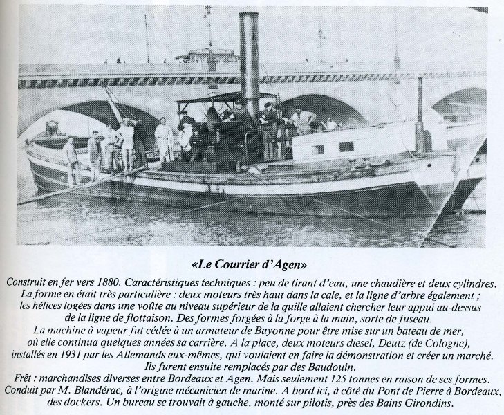 Porteur à vapeur en fer de 29,00m x 5,10m construit en 1888 au chantier Labat&Limousin à Bordeaux.