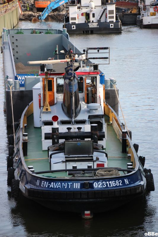 En Avant III , 22,80 x 5,75 x 1,90 , 26 ton , Bouwjaar 1963 , Werf Jonker en Stans in Hendrik Ido Ambacht ( Nederland ) , ex Independent VI , eigenaar Waaltransport BV in Gendt , ENI 02311682