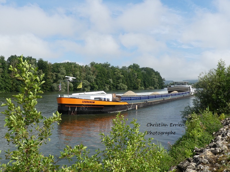 un an après revoici le LUGDUNUM sur l'Yonne à Cannes écluse et l'aval de Labrosse. Ce bateau fait la navette entre la sablière de Courceroy (bief de Villiers sur Seine) et l'aval de Barbey. Il transporte du tout venant qui sera ensuite calibré et réexpédié.