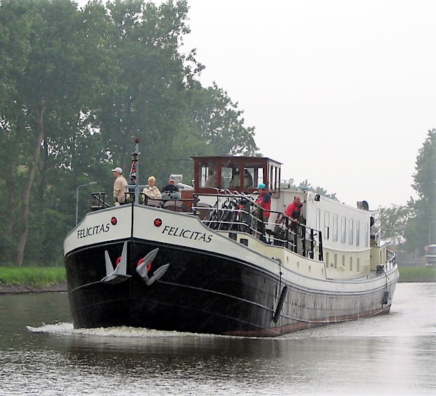 Felicitas , 37,53 x 5,39 x 1,20 , Bouwjaar 1932 , Werf Volharding in Gouwsluis ( Nederland ) , 167 pk Caterpillar , ex Martha , ex Walrus , ex Sjoleca , ex Lena Margriet , ex Rijnland , eigenaar J.C.M.van.Sonbeek in Amsterdam , ENI 03031004