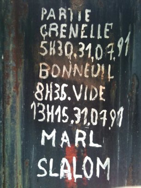 Sur les bajoyers ou les portes d'écluses, sur les quais ou sur les murs, et même jusque sous les ponts, elles s'offrent aux regards des passants, restant énigmatiques pour la plupart d'entre eux et rappelant des souvenirs aux connaisseurs... Ce sont les signatures de mariniers, que l'on retrouve tout au long de nos voies navigables, composées le plus souvent simplement d'une devise et d'une date, parfois nous offrant même des indications sur le voyage effectué.