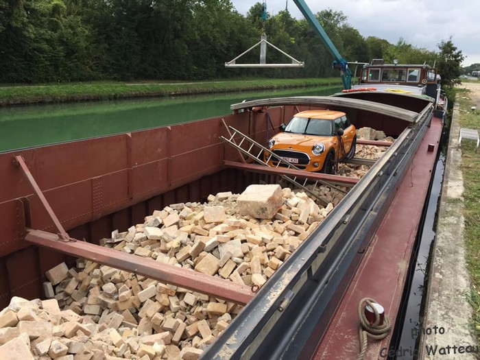 De Bollène, retour à vide à Anvers par les Vosges et la Meuse ; je l'ai photographié le 5 septembre 2016 à l'écluse de Messein, la dernière du canal des Vosges, et devant l'usine de Neuves-Maisons, où le