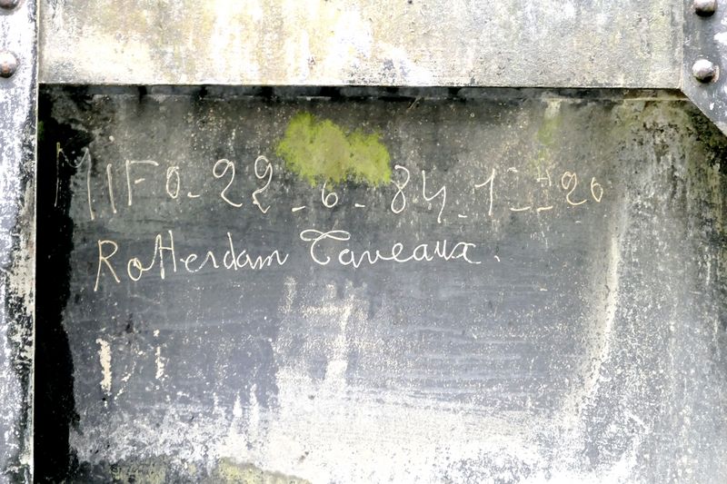 KENDALL a chargé à Stein des engrais pour Sète, mais ce qui nous intéresse est un voyage plus ancien, dont on trouve une trace sur le vantail aval gauche, laissée par un habitué de notre rubrique "Les Signatures" :
