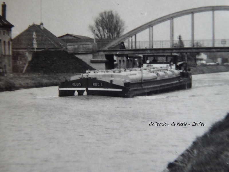 voici une photo noir et blanc prise à Thourotte dans les années 50 . On voit le REGIS équipé de citernes à ciment . Je pense que c'est une forge de Strasbourg.