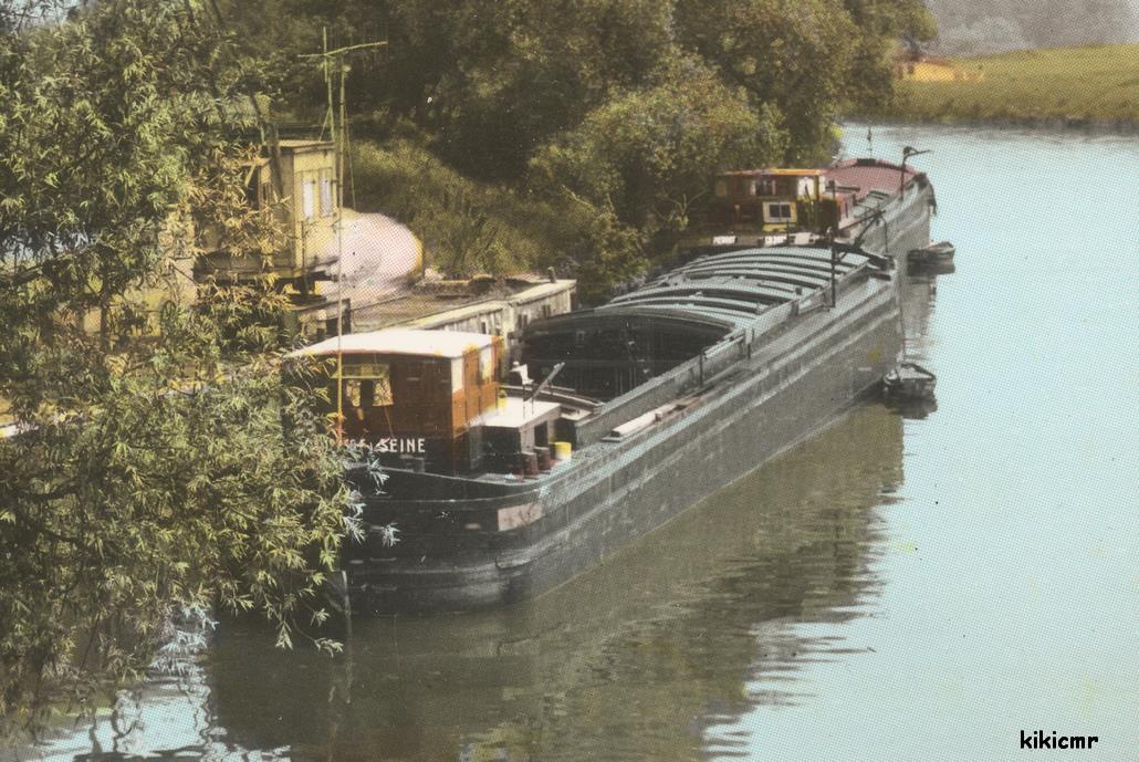 Sur une carte postale de Cuise-la-Motte (exemplaire écrit en août 1969), deux bateaux sur l'Aisne ; le premier, c'est bien un Strasbourg, non ? La devise est lisible, mais le matricule est en partie caché :