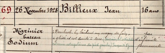 26 novembre 1928 - Billieux Jean, 16 ans, marinier bateau SODIUM ;