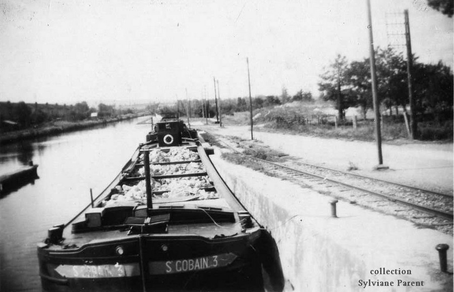 chargé de calcaire, amarré à l'aval de l'écluse de La Madeleine