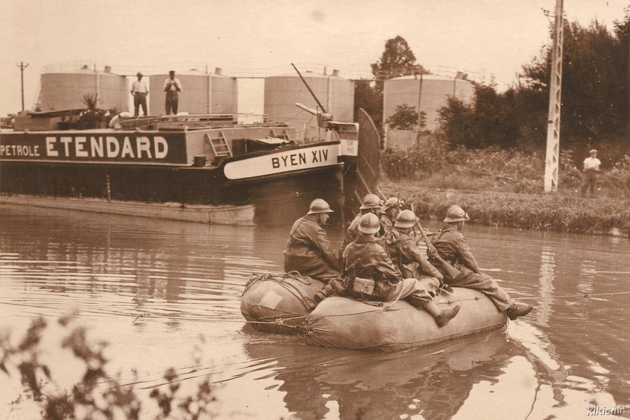 PASSAGE DES TROUPES SUR LE CANAL DE L'AISNE À BORD DES SACS TRANSBORDEURS.