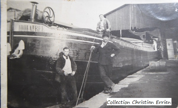 voici une très jolie carte photo non datée et non située. Le bateau IDOLATREE est en partie dans un dock , serait-ce Cambrai? Quant au chantier je pense éventuellement à un Arbel....