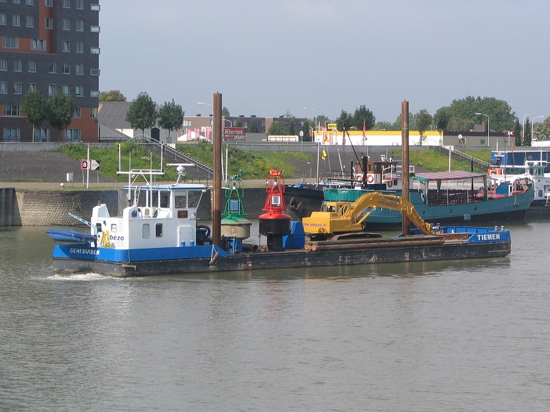 Tiemen , 35,05 x 6,60 x 1,65 , 194 ton , Bouwjaar 1998 , Werf Silverta b.v in Heeg ( Nederland ) , 2 x 170 pk DAF en 25 pk Electro Hydroliek boegschroef , eigenaar Tebezo Waterbouw Vof in Genemuiden , ENI 02208314