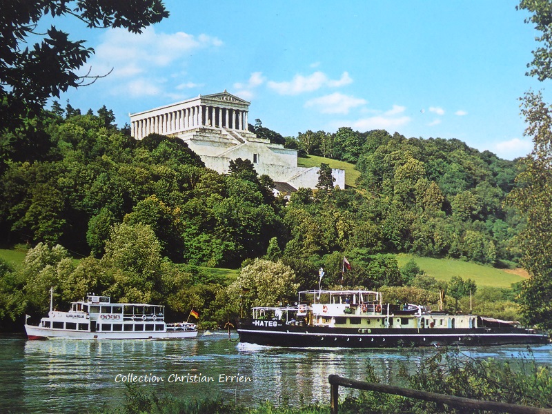 Voici une cpm du Danube à Walhalla. On y voit un remorqueur le HATEG