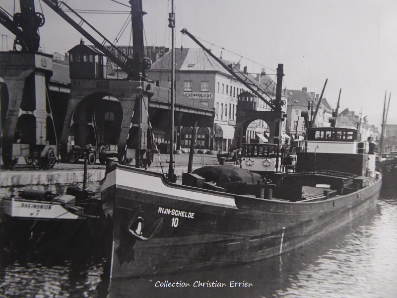 A sa gauche en partie masqué RHEINUNION 7 (ex LIPPE ex COURTRAI) construit en 1895 au chantier P.Smit Jr à Rotterdam. (57m48x7m09/497t)