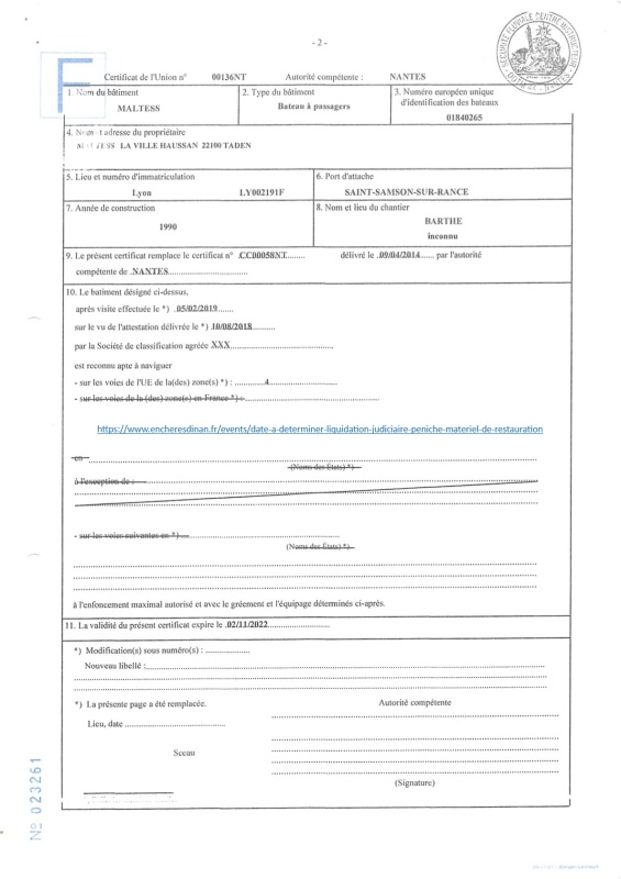 , moi je sais , je l'ai conduit en 2016 entre St Samson sur Rance et Dinan et vu les document de ce bateau