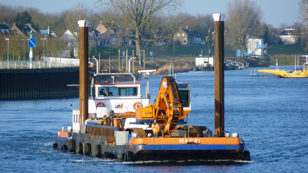 Magri , 46,65 x 8,17 x 1,87 , 422 ton , Bouwjaar 1944 , Werf Holland in Hardinxveld , 300 pk GM , ex IJssel 1 , ex Gerwi , ex De Mol , eigenaar Paans van Oord BV in Gorinchem , ENI 03150258