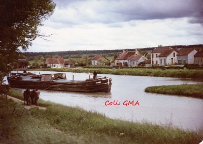 la carte a bien été éditée , j'en ai un exemplaire , ce qui est plus intéressant ce sont les commentaires au dos . Il y a le tonnage du bateau 180t et le surnom de ce bateau "Bata" en plus il y a une date 1953 qui contredit de 10 ans ce qui est écrit sur le tirage original. En tout cas une très belle scène de navigation à Plagny.