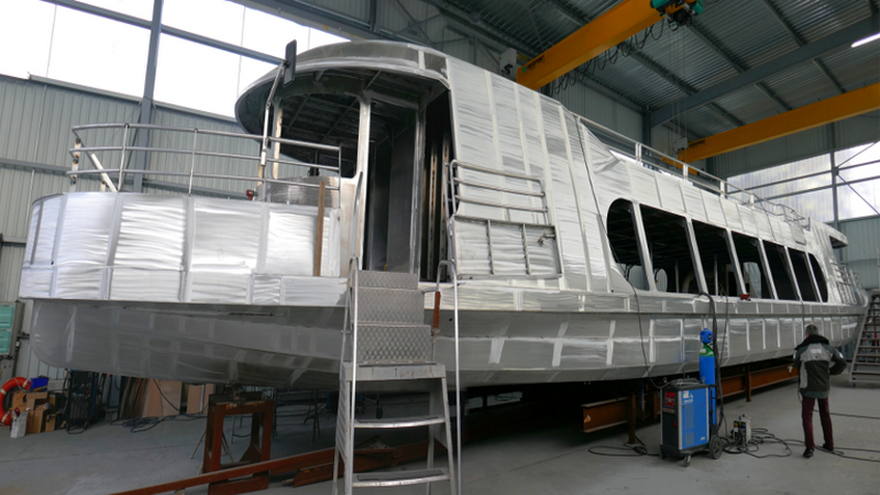 Construction en Aluminium , dim 24,60 m X 6,30 m ,,tirant d'eau 0,49 m passagers 149
