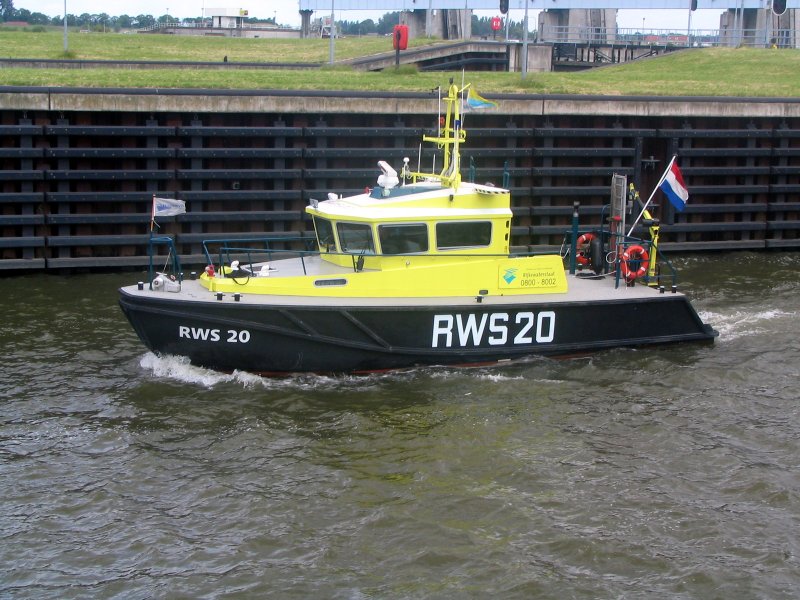 RWS 20 , 13,56 x 3,85 x 1,02 , Bouwjaar 2002 , Werf Greuns in Leeuwarden ( Nederland ) , 2 x 410 pk Lombardi , ex P 35, eigenaar Rijkswaterstaat Rijksrederij in Rijswijk (ZH)