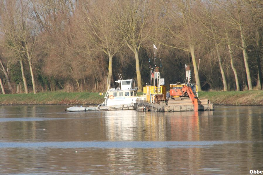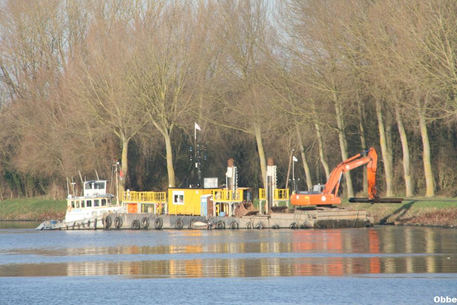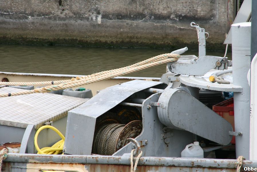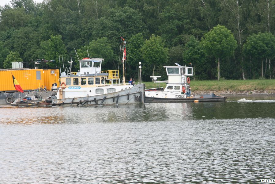 Il pousse par son etrave le Gueuse apartenant a l'association bruxelloise "La Fonderie" qui fait decouvrir le patrimoine industriel de Bruxelles.