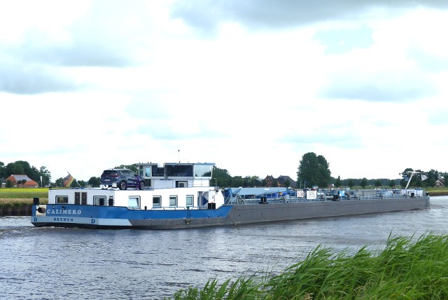 Calimero , 84,74 x 9,50 x 3,05 , Bouwjaar 2015 , Werf GS Yard in Waterhuizen ( Nederland ) , 1014 pk Caterpillar en 383 pk Electromotor – Verhaar Omega-Jet boegschroef, eigenaar C. Meyer Tankschiffahrt in Bremen , ENI 04812150