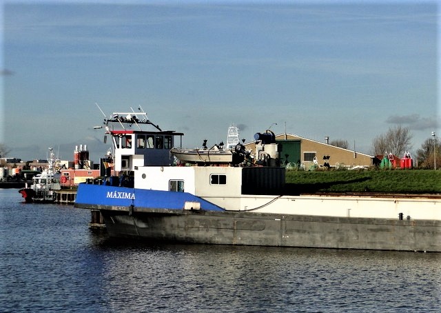 Maxima , 62,90 x 7,03 x 2,80 , 650 ton , Bouwjaar 2002 , Werf Societatea Comerciala Navol in Oltenita ( Roemenië ) en De Gerlien – Van Tiem in Druten ( Nederland ) , 2 x 406 pk Caterpillar en 325 pk Caterpillar – van Tiem boegschroef , eigenaar ? in Yerseke, ENI 02325361