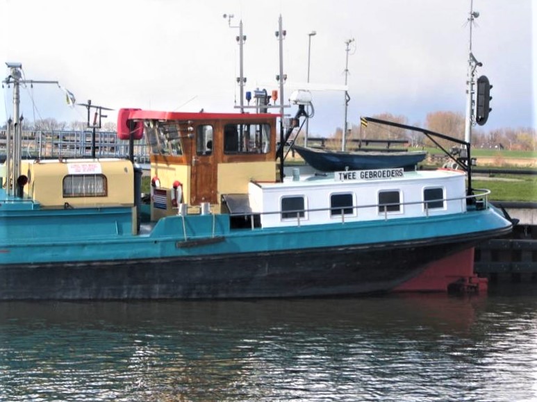 Twee Gebroeders , 39,15 x 5,40 x 2,06 , 218 ton , Bouwjaar 1927 , Werf H. Kroeze in Hoogezand ( Nederland ) , 465 pk Deutz en 120 pk DAF boegschroef , ex Variatie , eigenaar C. van Beest in Vreeswijk , ENI 02302440
