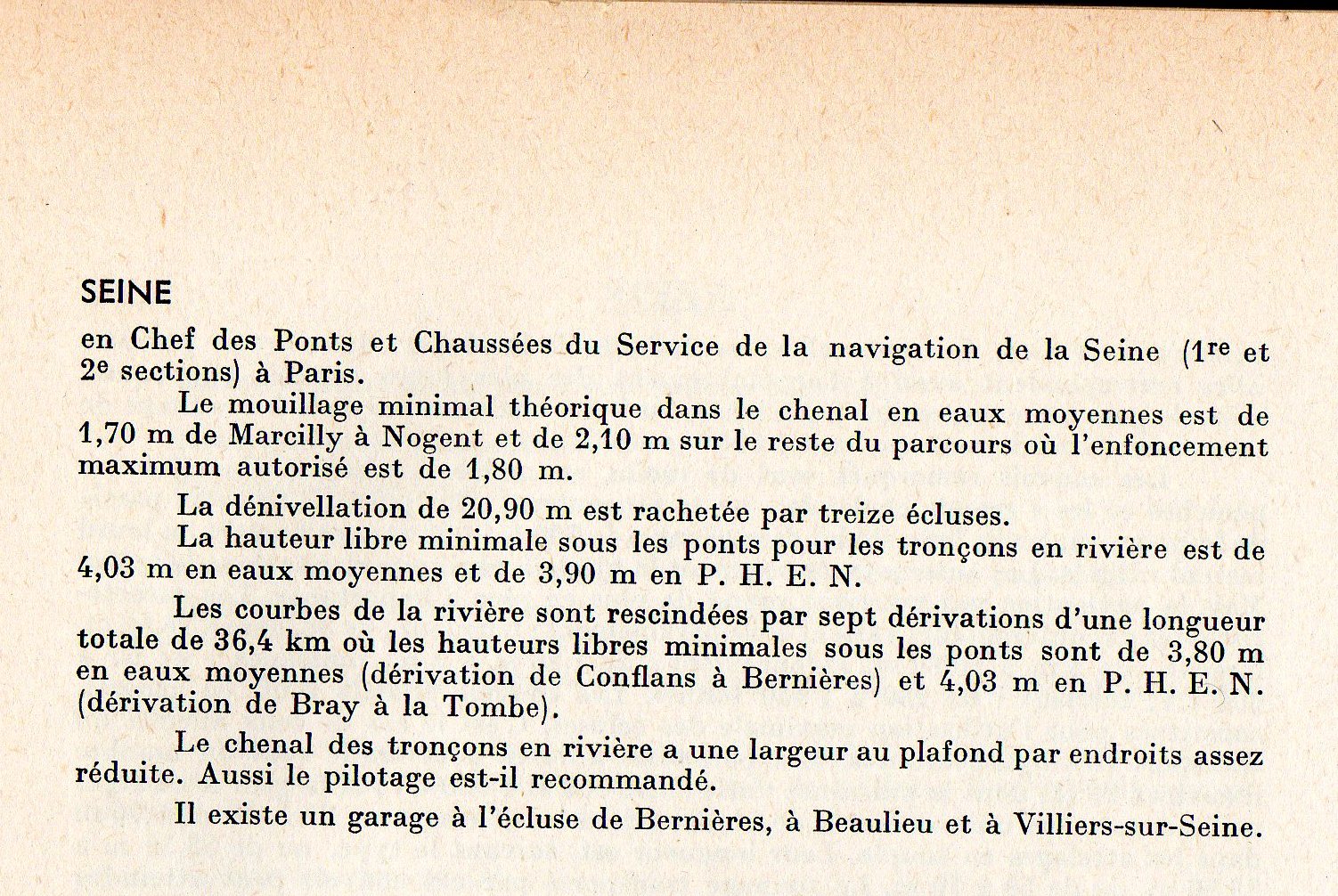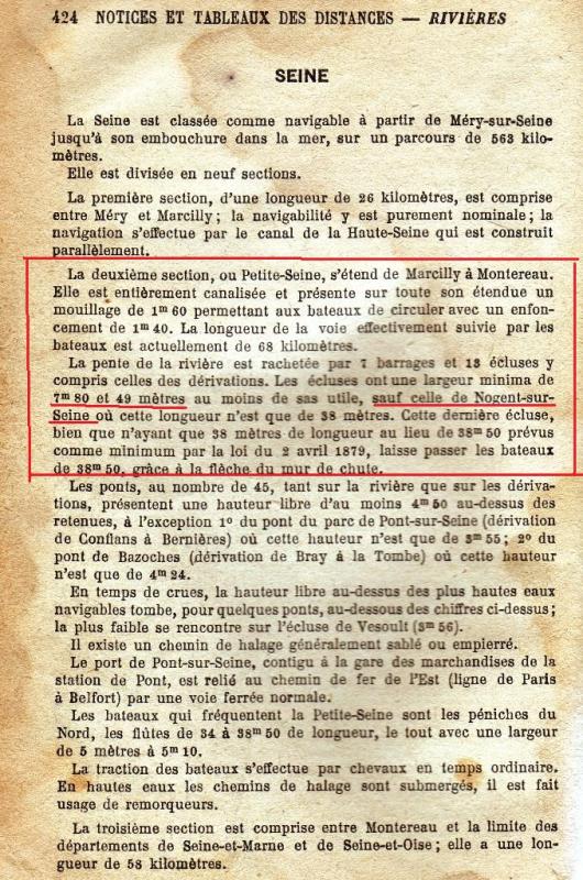 quelqu'un qui aurait un vieux guide de la navigation pourrait me dire quel etait les carcteristiques des bateaux admis a naviguer sur la petite seine entre BRAY et NOGENT