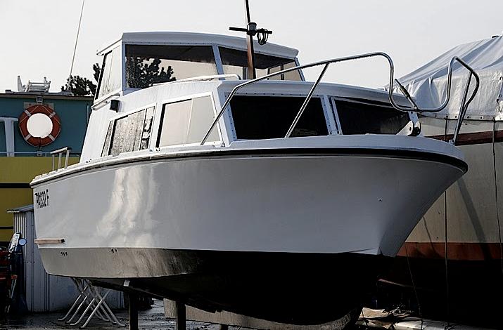 Ce bateau a, à cette occasion reçu une peinture intégrale en Polyuréthane bi Composant(Trois couches), puis pour finir Trois couches d'antifouling Hempel.