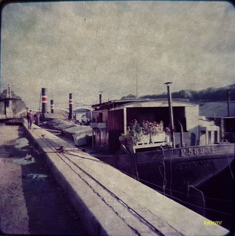 Cette image vient d'une diapo que j'ai numérisée. Il n'y a pas de précisions, mais elle fait partie d'un lot dont, sur certaines, l'année est précisée : 1962, alors peut-être que cette photo aussi date de 1962. L'endroit n'est pas précisé, mais peut-être que quelqu'un va reconnaître les deux ponts à l'arrière-plan...
