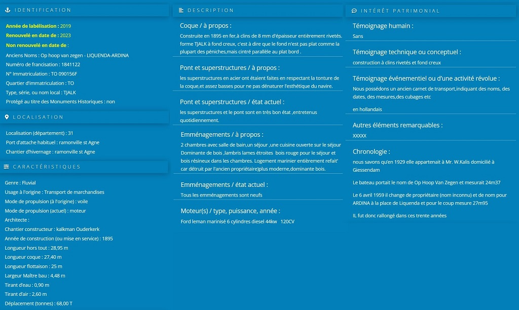 Le contenu des pages Web étant parfois éphémère, je joins la fiche du PATRIMOINE MARITIME ET FLUVIAL.