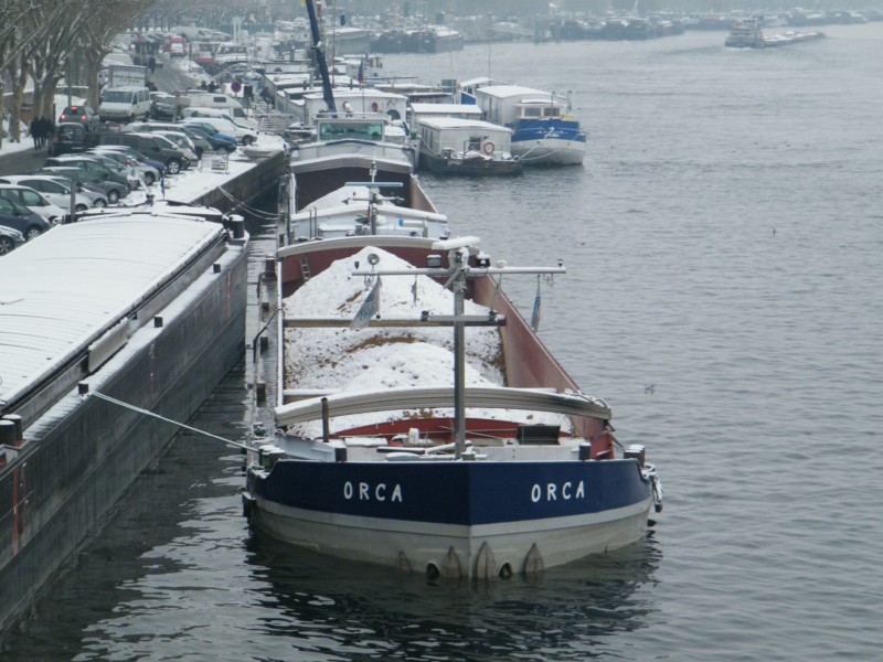 Orca : 60m x 8m 1260tonnes construite a Chatenay a Nantes en 1923 et transformee au chantier de la haute seine en 1993