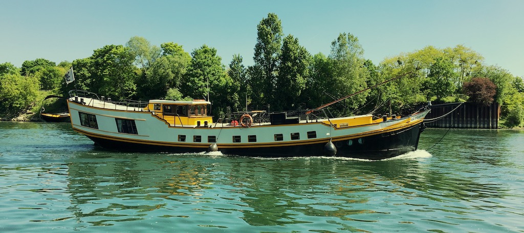 C'est un klipper hollandais de 1927, ex devise Wirreanda 1, un bateau a passagers/péniche hotel assez bien connu dans les années 80;parce que l'equipage etait des Sri lankais , un nation renomée pour le qualité de leur service mais tres difficile pour le proprietaire d'immatriculer pour le Secu etc.