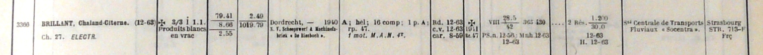 "IVR 1963:L.79,70m ,B:8,64m, Tiefg.:2,41m, 994 ton.10 Ladetanks, Bauwerft Bodewes Millingen 1951,500 Ps/Sulzer, Reederei Plouvier's Transport-Compagnie N.V.,Rotterdam."