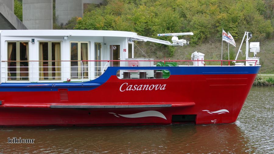 Casanova , 103,00 x 9,91 x 1,30 , Bouwjaar 2001 , Werf SET Tangermünde in Tangermünde ( Duitsland ) , 2 x 680 pk MAN , eigenaar P. Deilmann Reederei GmbH & Co KG in Neustadt-Holstein , ENI 04800110