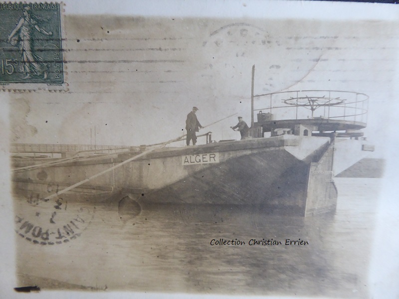 Bonjour , sur cette carte photo de 1919 on voit un chaland en béton armé selon moi nommé ALGER