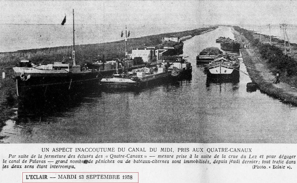 1938, l’ANETO est bloqué aux ‘’ 4 canaux par le Lez en crue.