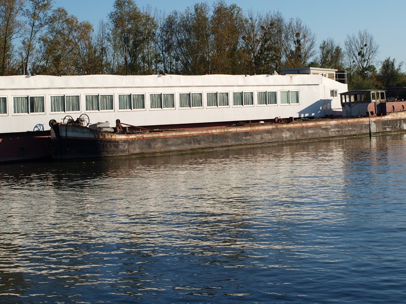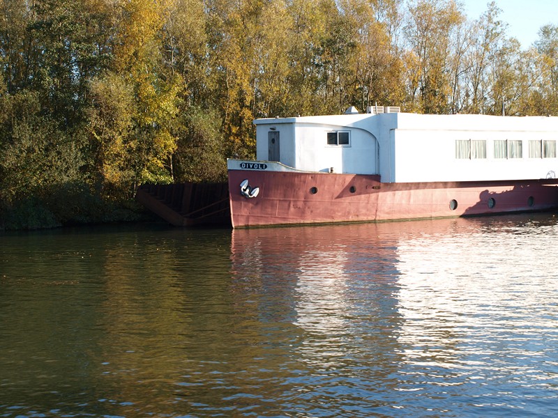 Ce bateau faisait 5.50m de largeavant sa transformation en restaurant,donc un ancien canal du nord.Il y a une photo quelque part sur le forum ou on voit une bonne partie de l arriere mais pas retrouvee