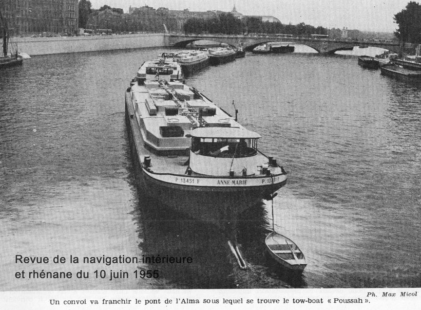 Dans un article de la Revue de la navigation intérieure et rhénane du 10 juin 1955 consacré à la Journée d'information de la navigation intérieure du 26 mai 1955, organisée par l'Association pour le Développement des transports par eau, une photo d'un convoi remorqué, dans le cadre du défilé ayant eu lieu sur la Seine :