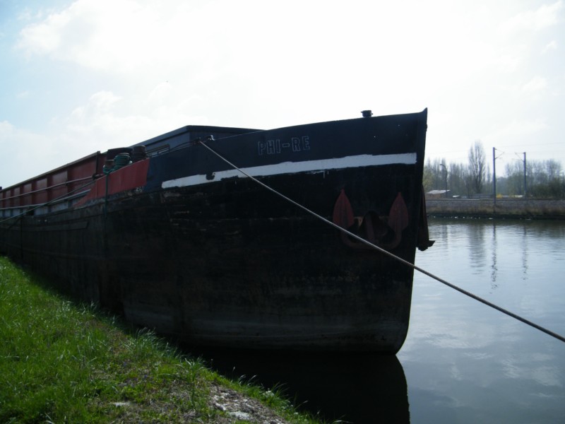 "PHI-RE" en attente sur le canal d'aire au niveau de beuvry, vu son etat, je sais pas si il attend d'etre vendu ou alors si il attend de partir au déchirage?