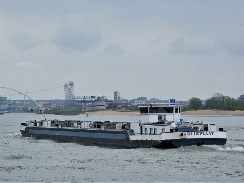 Blikplaat , 86,00 x 9,50 x 3,30 , 1733 ton , Bouwjaar 2012 , Werf Stocznia Kozle Serwis in Kozle ( Polen ) en Bodewes in Millingen a/d Rijn ( Nederland ) , 1014 pk Caterpillar en 450 pk Gerlien-van Tiem boegschroef , eigenaar Scheepvaartonderneming Blikplaat CV in Groningen , ENI 02332821
