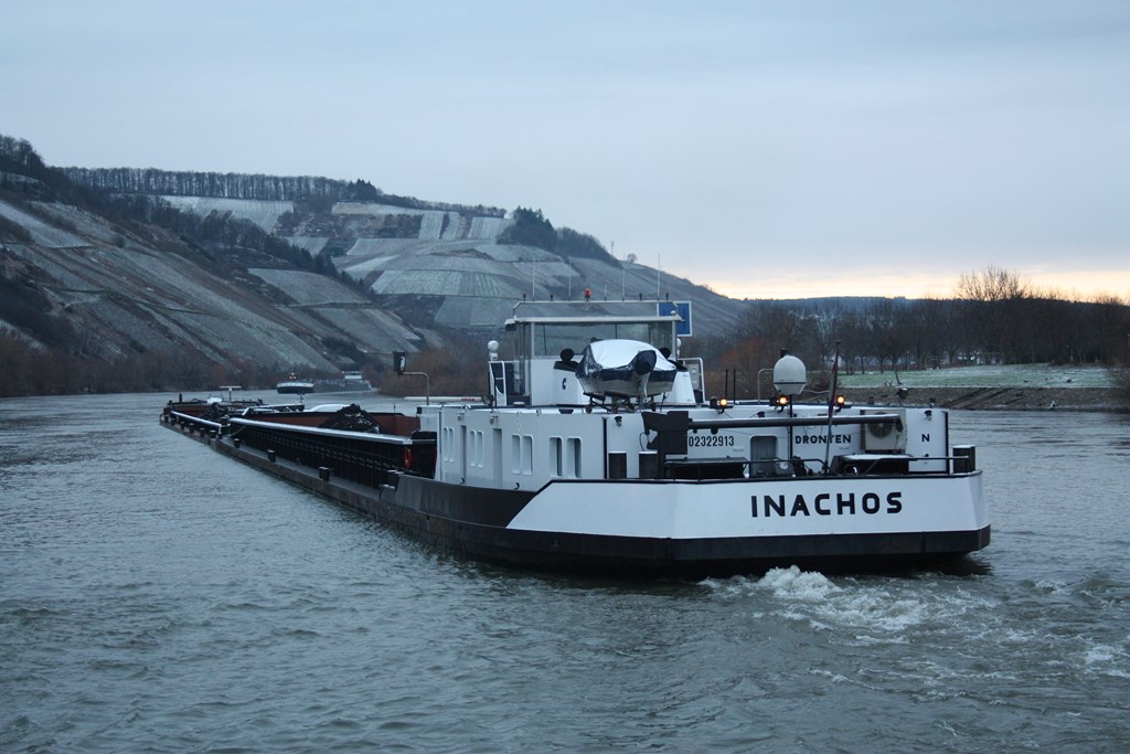 Inachos , 94,96 x 11,40 x 3,45 , 2575 ton , Bouwjaar 1983 , Werf Ruhrorter Schiffswerft in Dbg Ruhrort ( Duitsland ) , 2 x 1200 pk Cummins , ex Albula , ex Inachos , eigenaar Gebr. De Jonge Vof in Lochem , ENI 02322913