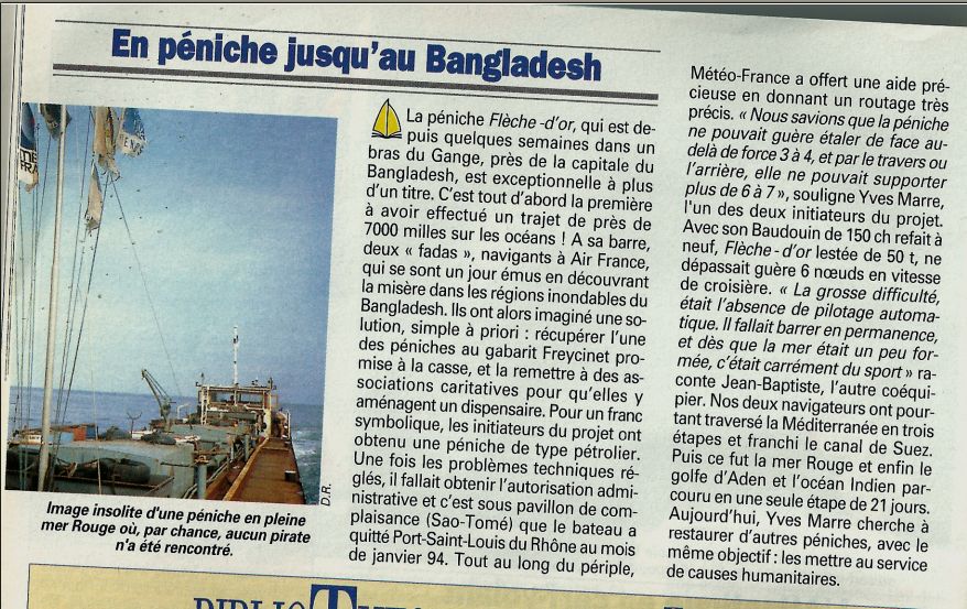 YVES MARRE sort le 8/10/2014 un livre relatant son périple sur "Flèche d'or" devenue "Friendship" ..maintenant " Friendship Lifebuoy Hospital" opérant au Bengladesh ( 50.000 consultations par an ...