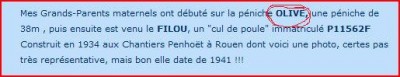 mes beaux-parents se sont maries en 1920 et ont eu l'olive bateau en bois jusqu'en 1934, je met une photo de bateau en bois mais ce n'est pas l'olive