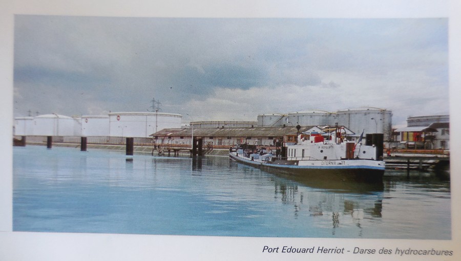 Le bateau, chargé à bloc, est dans le fond de la darse des hydrocarbures, au port Edouard Herriot à Lyon, et donc avant 1981, mais après la mise en eau de Pierre-Bénite en 1966.