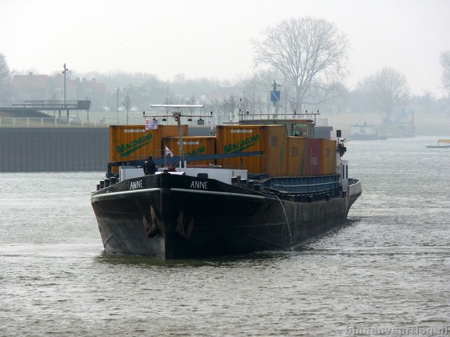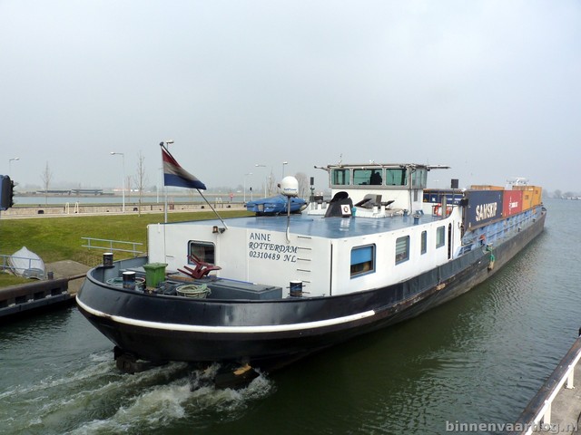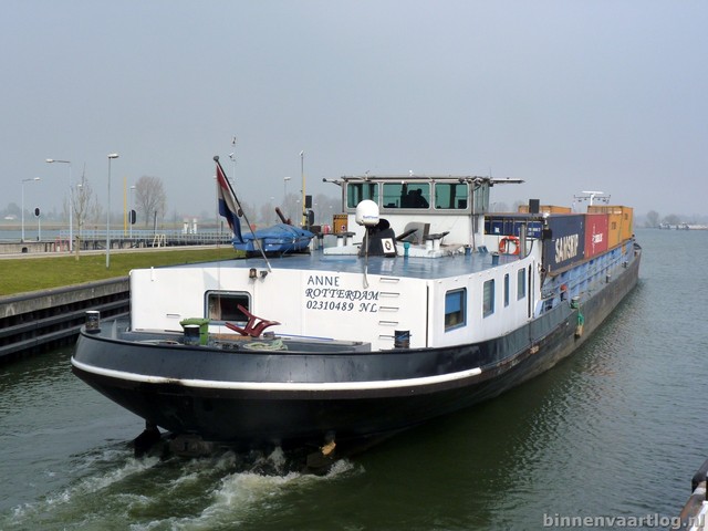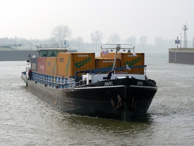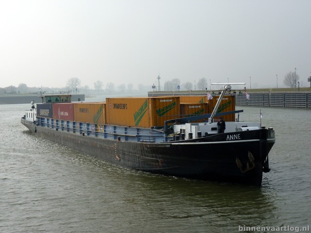 Anne , 84,98 x 9,49 x 2,62 , 1265 ton , Bouwjaar 1959 , Werf Bodewes in Millingen a/d Rijn ( Nederland ) , 2 x 540 pk Detroit en 320 pk DAF boegschroef , ex Roerstroom , ex Damco 271 , ex Wilma , ex Tramontane , ex 2 x Petronella , ex Saro , eigenaar Laurien Shipping in Rotterdam , ENI 02310489