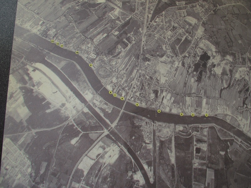 J'ai encore trouvé une liste et une reproduction d'une photo aérienne d'avant l'ouverture de la nouvelle écluse de Wintam. Bien cachés derrière une haie, dommage. Lorsqu'on se promène rien n'indique ces anciens chantiers. Le n°2 VENNEKENS c'est l'ex DE WACHTER