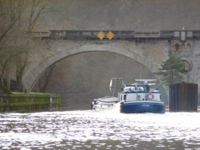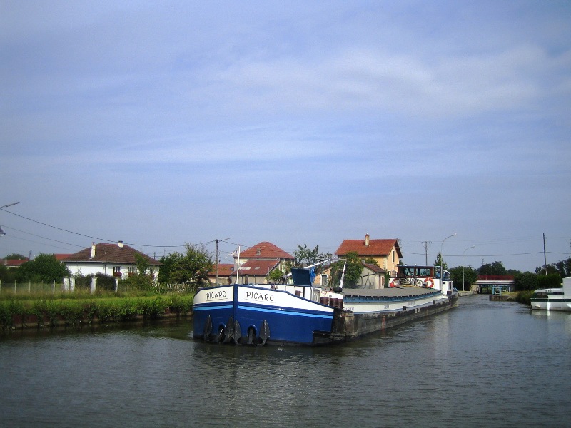Le PICARO fait une halte en amont de l'écluse de Bourgogne pour aller faire des courses au supermarché voisin.