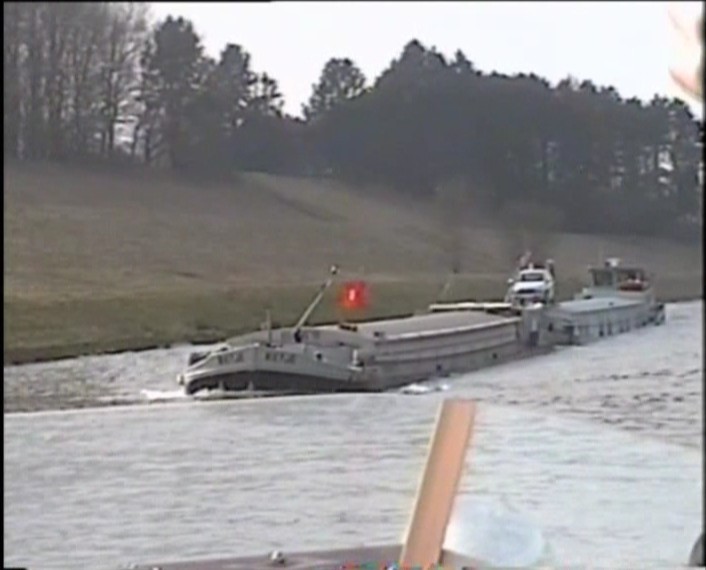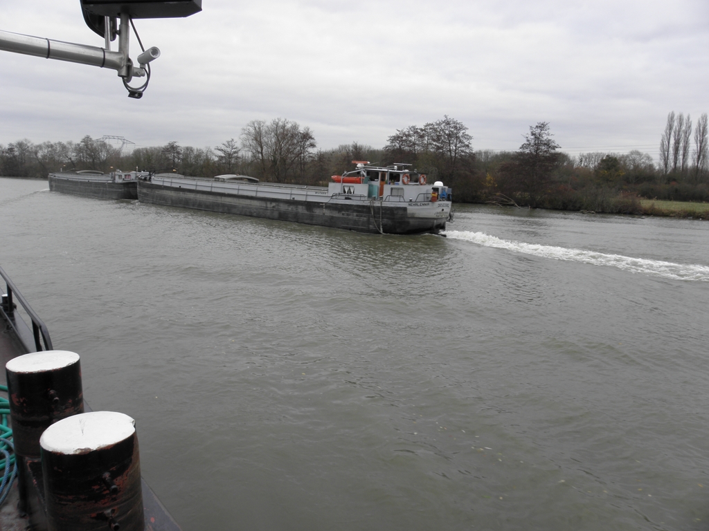Les rafales de vent et la neige font que je reste sagement chez moi et je visionne un petit film d' avril 2005 avec notre vieux Libellule sur le Canal de Charleroi. C''était ma première sortie et aussi la première rencontre avec un convoi poussé . A l'époque je n'avais pas fait attention aux devises. Alors quelle surprise de reconnaître aujourd'hui Nehalennia poussant Rietje. Donc extrait de ce film VHS.